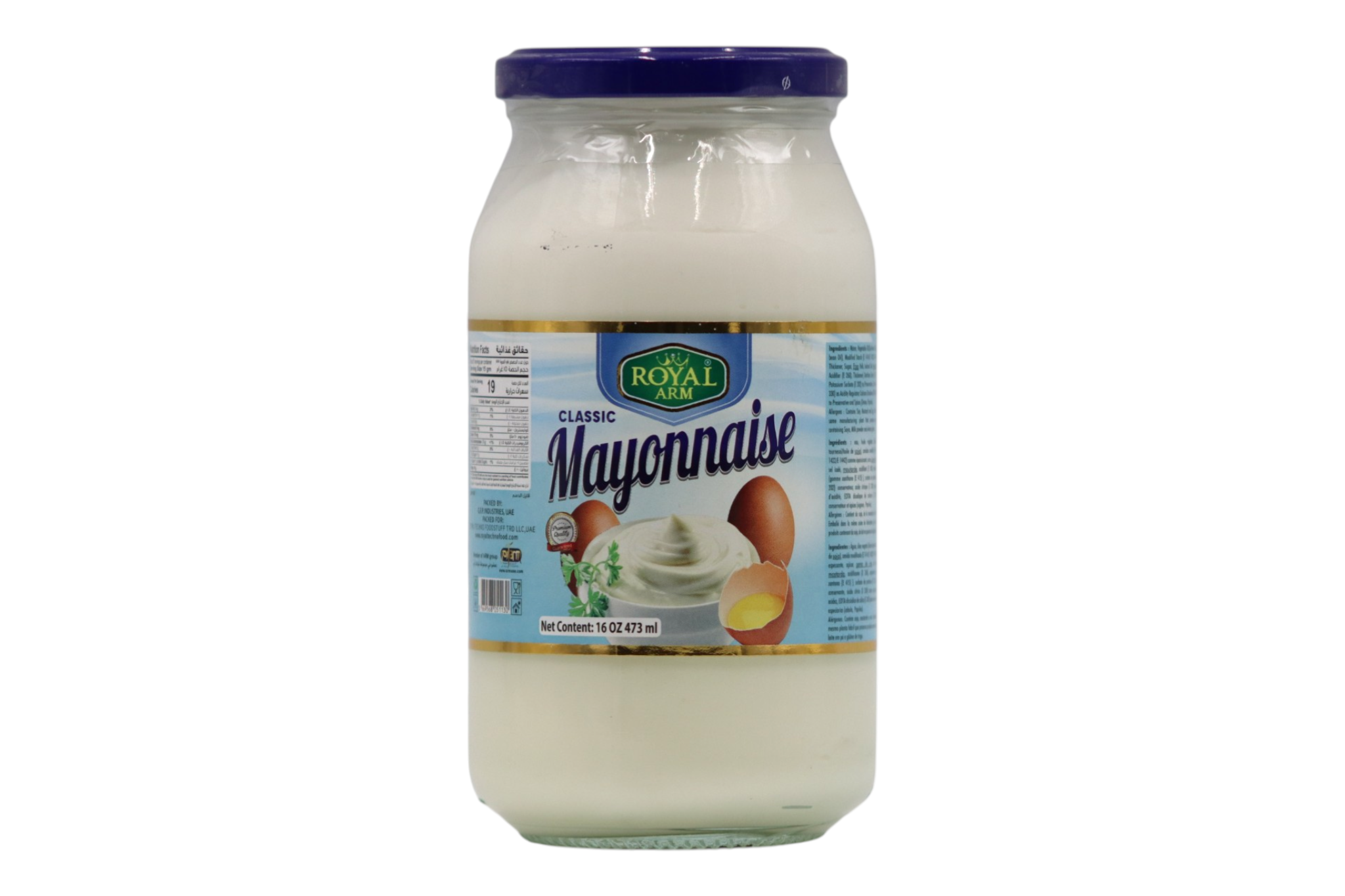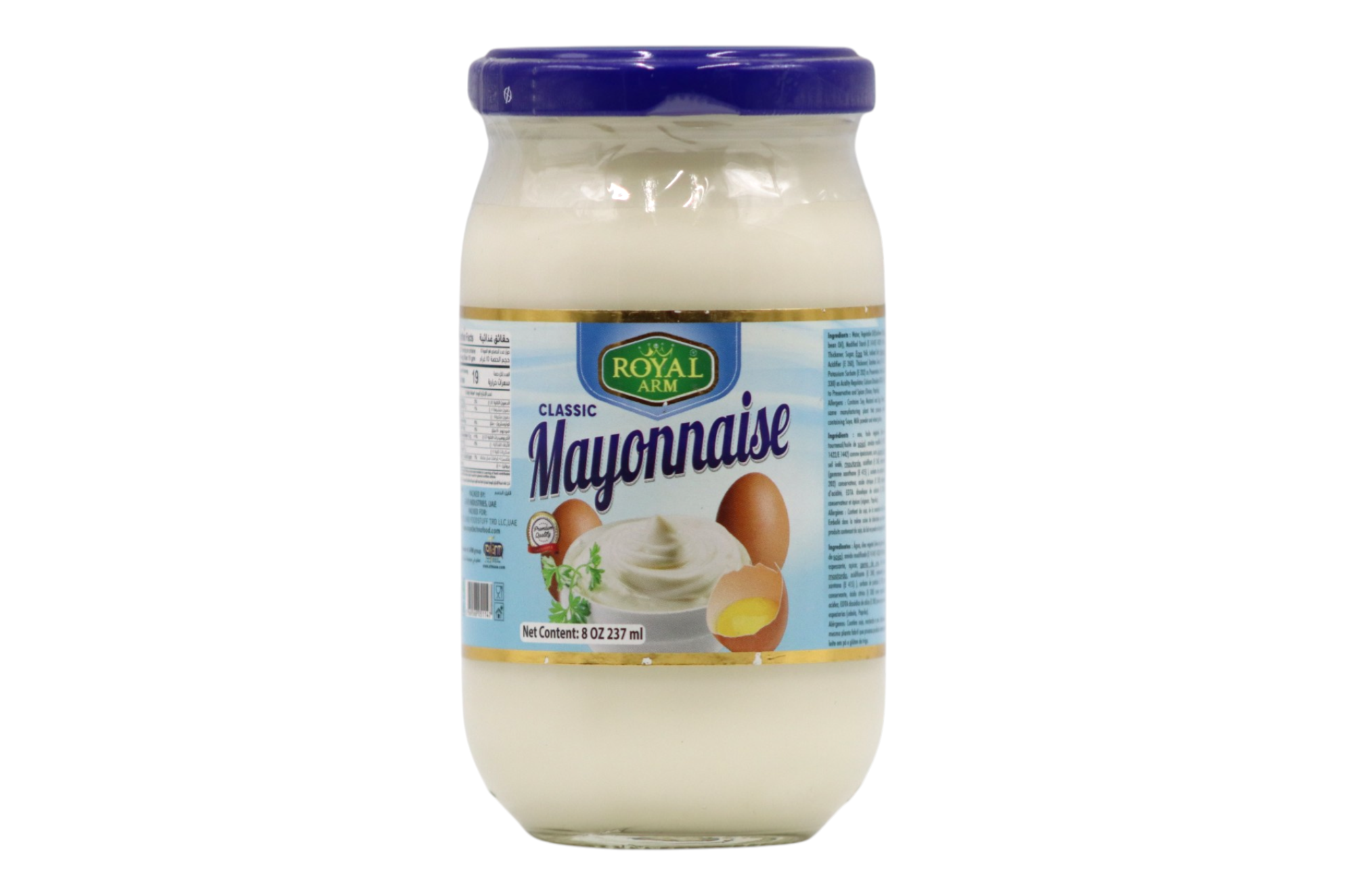 Royal Arm Mayonnaise is a rich and creamy condiment with a smooth texture, perfect for sandwiches, salads, and a wide variety of dishes.