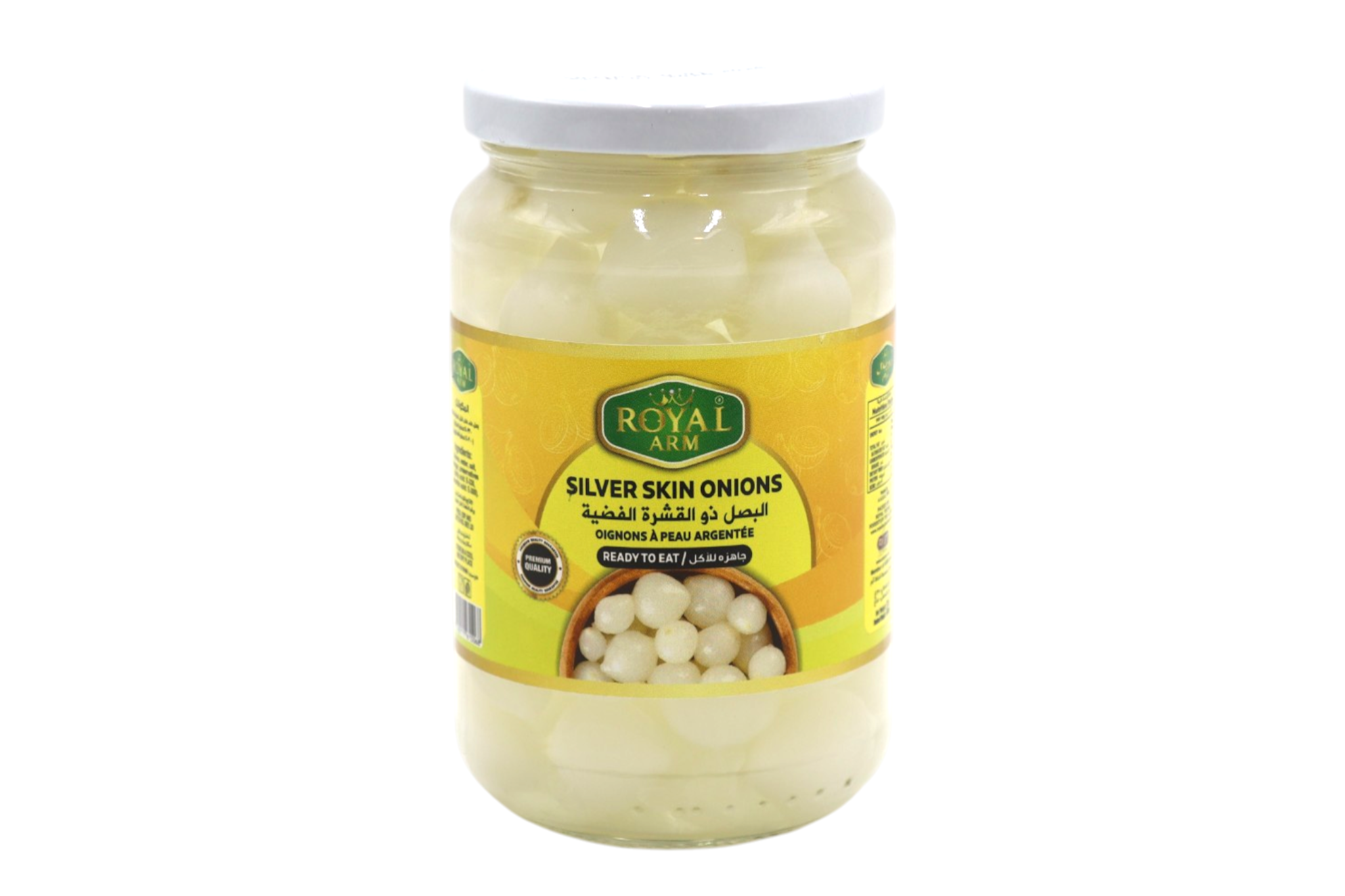 Delicate and mildly sweet silver skin onions, perfectly pickled for a crisp texture and tangy flavor—ideal for salads, appetizers, and gourmet dishes.