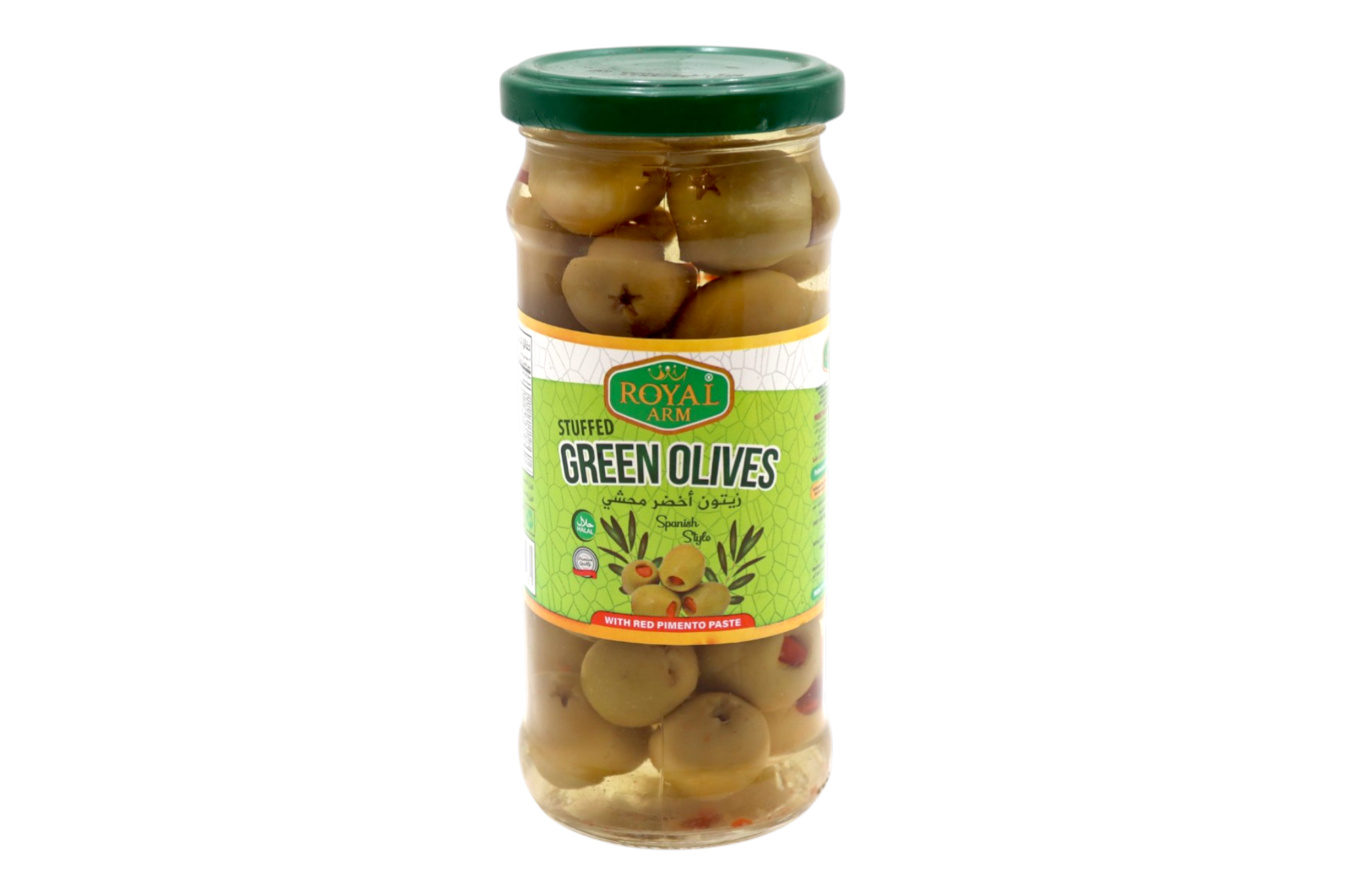 Enjoy the authentic taste of Stuffed Green Olives – Spanish Style with Red Pimento Paste, made from carefully selected green olives filled with a flavorful red pimento paste.
